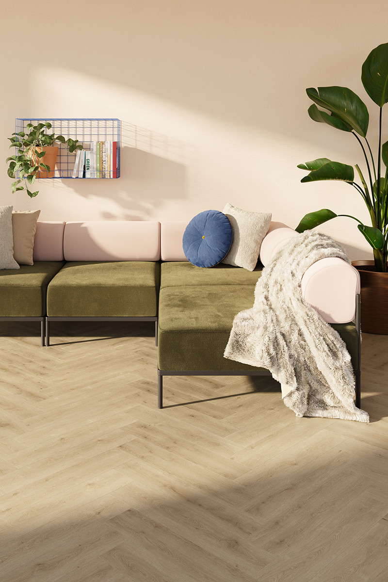 Brighten your space with the light, natural beauty of Lamett Mantaro Herringbone Glue Down LVT in Hay (5614). Featuring a pale, sun-washed wood tone and subtle grain detailing, Hay brings a soft, Scandinavian-inspired look to interiors — perfect for creating a fresh, airy atmosphere.